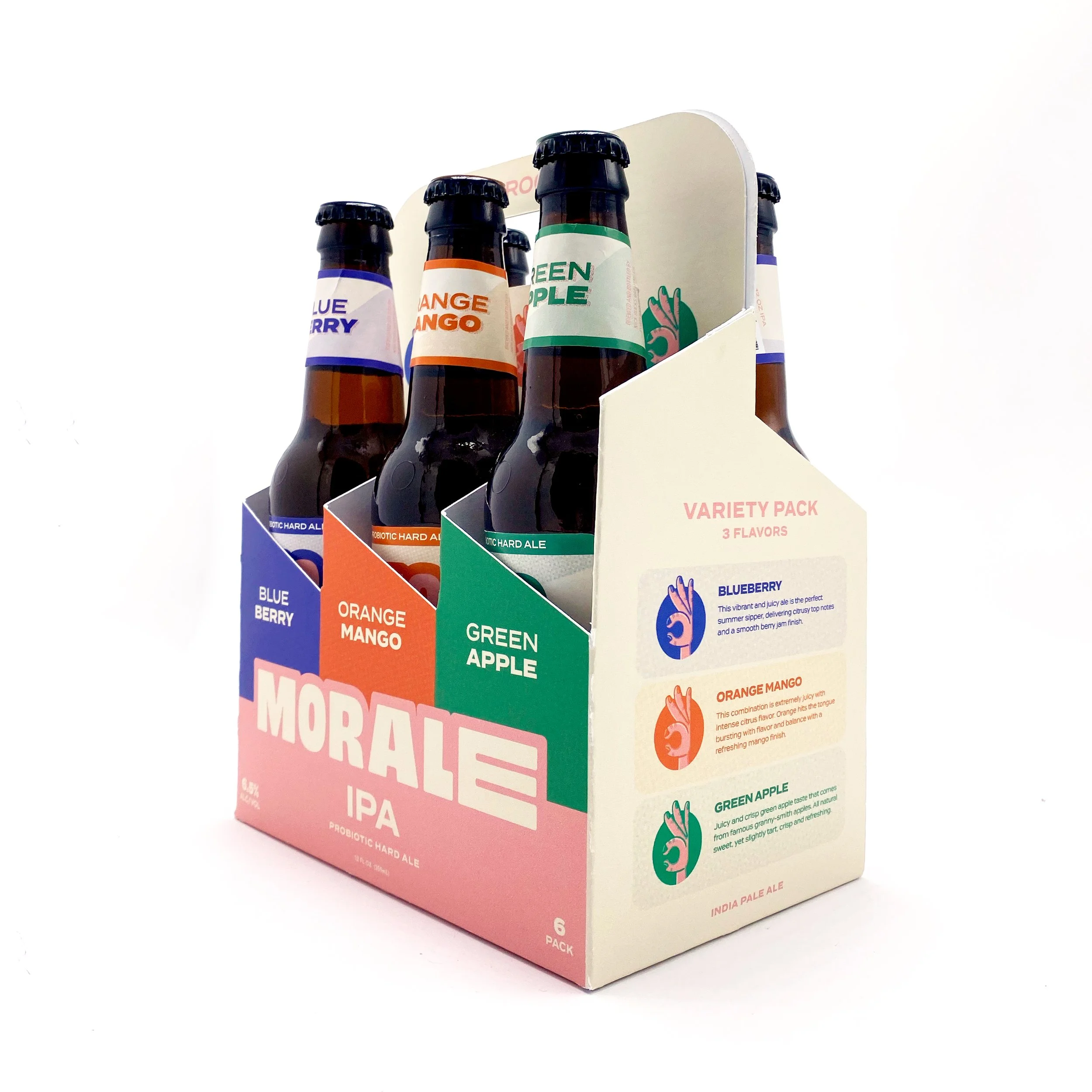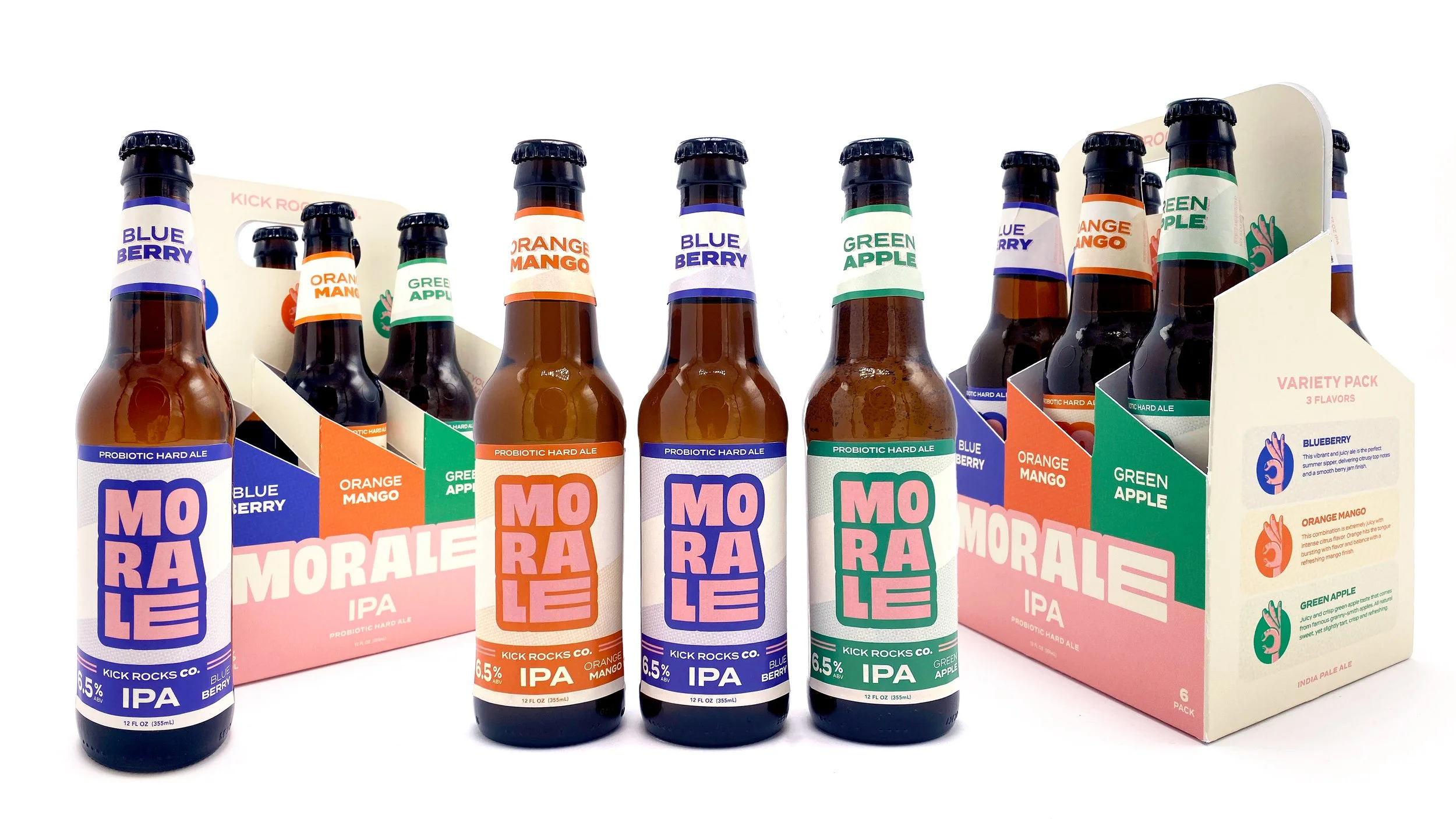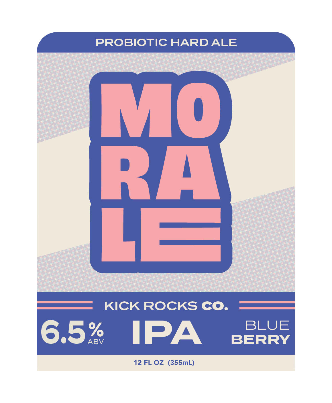 Morale is a Fruitful Probiotic IPA from the fictitious brewing company ‘Kick Rocks Co’. I wanted to feminize the consumption demographic for India Pale Ale by introducing fun and inviting colors and flavors. The flavors include Blueberry, Orange Mango, and Green Apple.